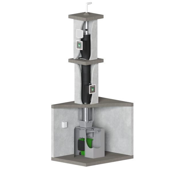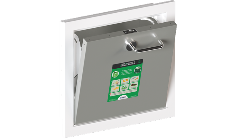 Food Organics & Garden Organics (FOGO) chute systems are designed specifically for organic waste, including food scraps and garden waste, where organic waste is processed into compost. Chute doors are typically situated within a compartment on each residential level adjacent to general waste and recycling chutes or bins.